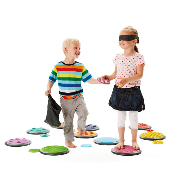 Les disques tactiles sont parfaitement adaptés pour des activités d’association (pieds vs mains), de description des textures et de développement du langage sensoriel.